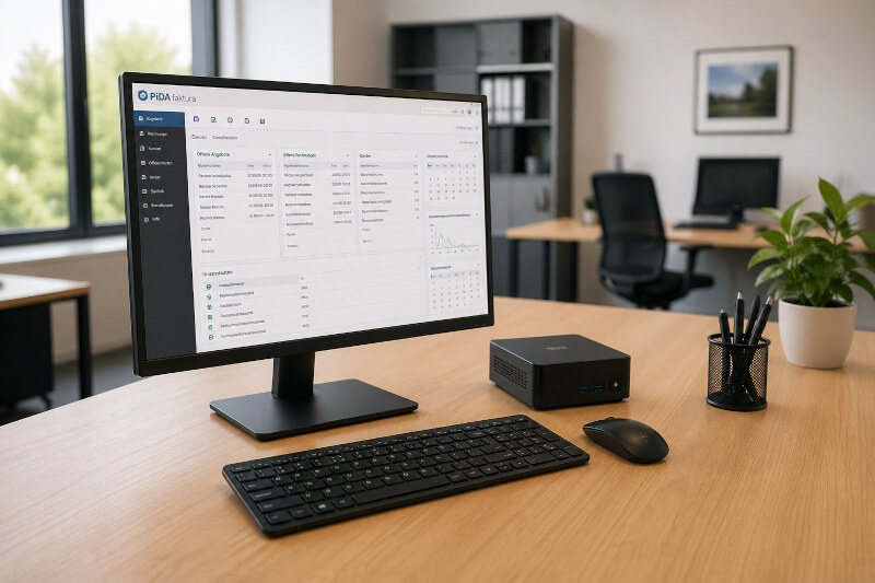 Mit unserem vorkonfigurierten Mini PC erhalten Sie eine fertige Serverlösung für PiDA faktura, die sofort