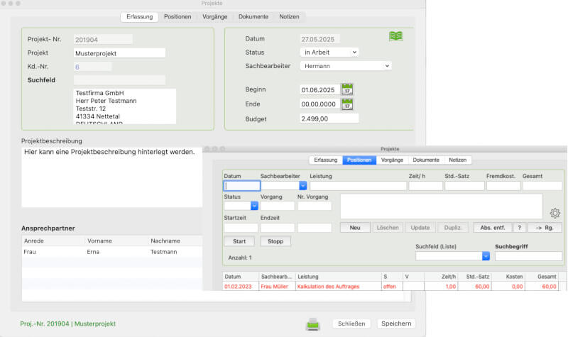 Strukturierte Projektverwaltung nach Kunden und Leistungen